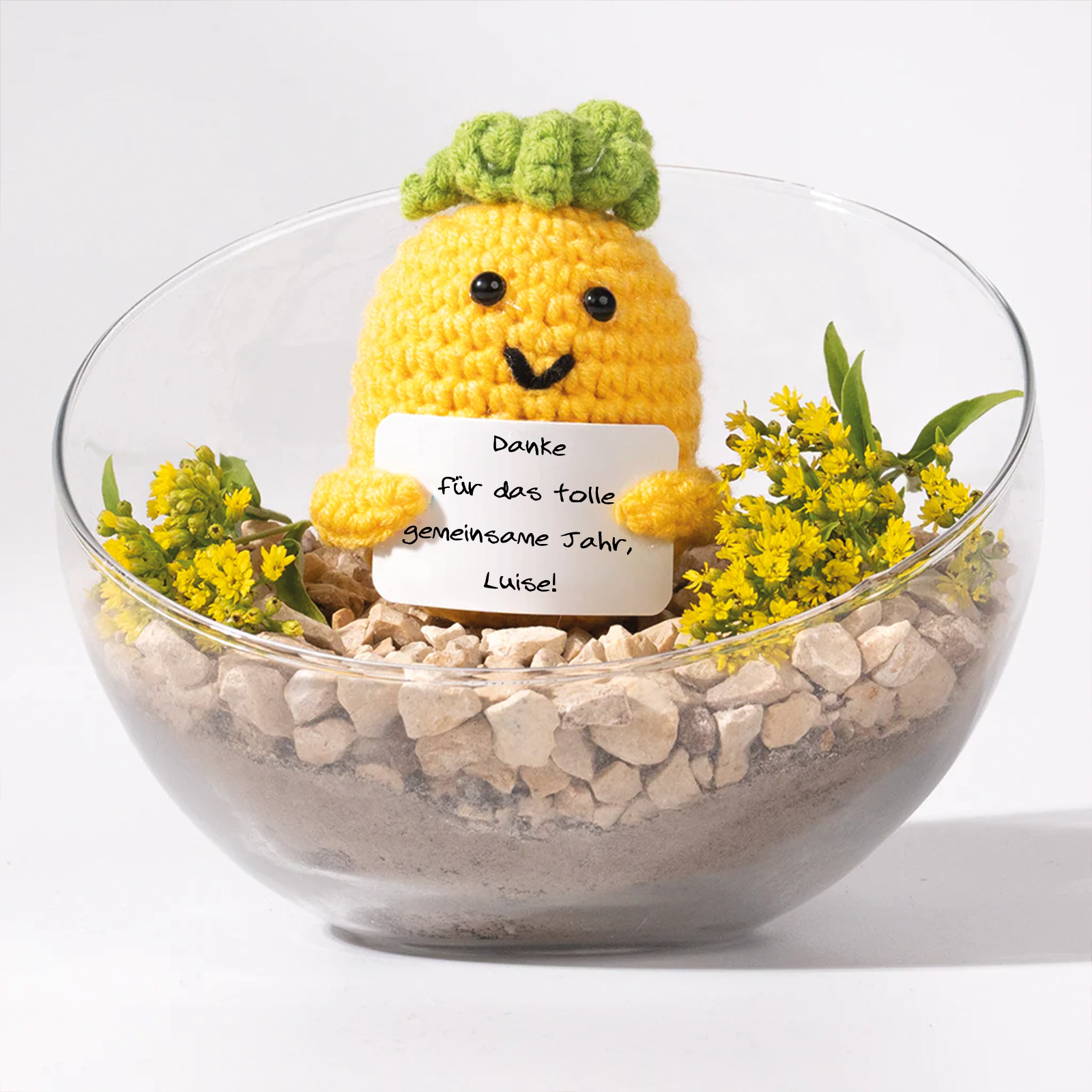 Unsere Knuffelknollen gibt es als Avocado, Ananas, Kartoffel, Ente, Hai oder Pinguin. Jede Knolle hält ein Schildchen, auf welches du einen eigenen Spruch setzen kannst.