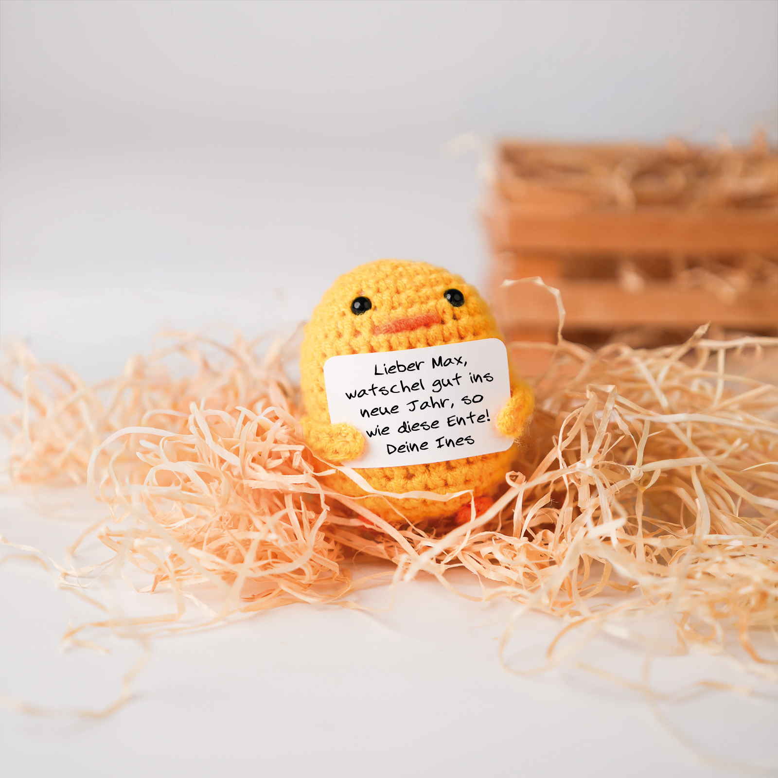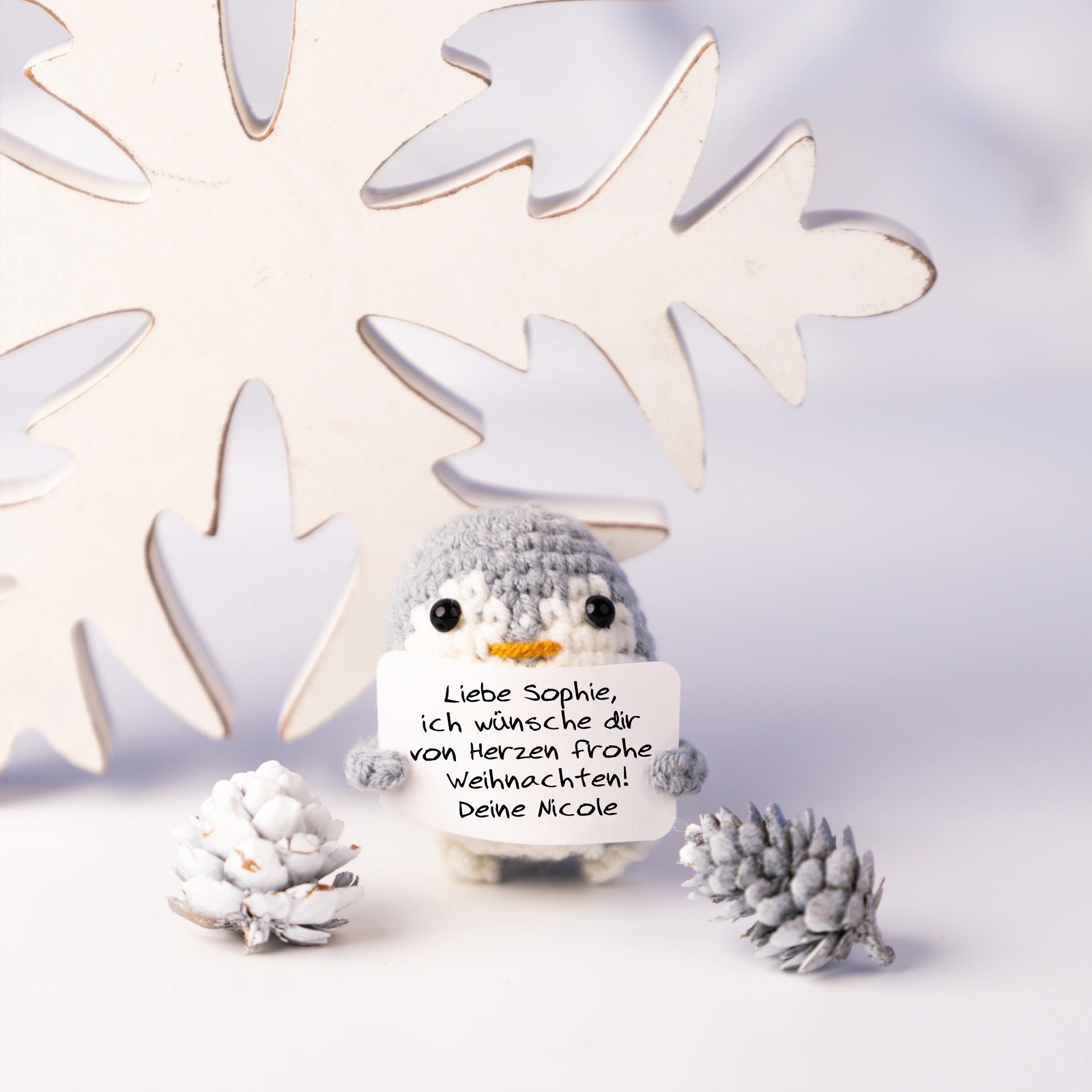 Als ich bestellt habe, hatte der Shop gerade Urlaub, aber nachdem Urlaub kam die süße Knolle super schnell an. Hatte zu dem Zeitpunkt noch gar nicht damit gerechnet. Ich habe den Pinguin mit einem eigenen Text bestellt. Total süß. Der Pinguin wird Teil eines Geschenkes. Bin gespannt was meine Freundin sagen wird. Das dauert aber noch etwas bis zum Geburtstag.